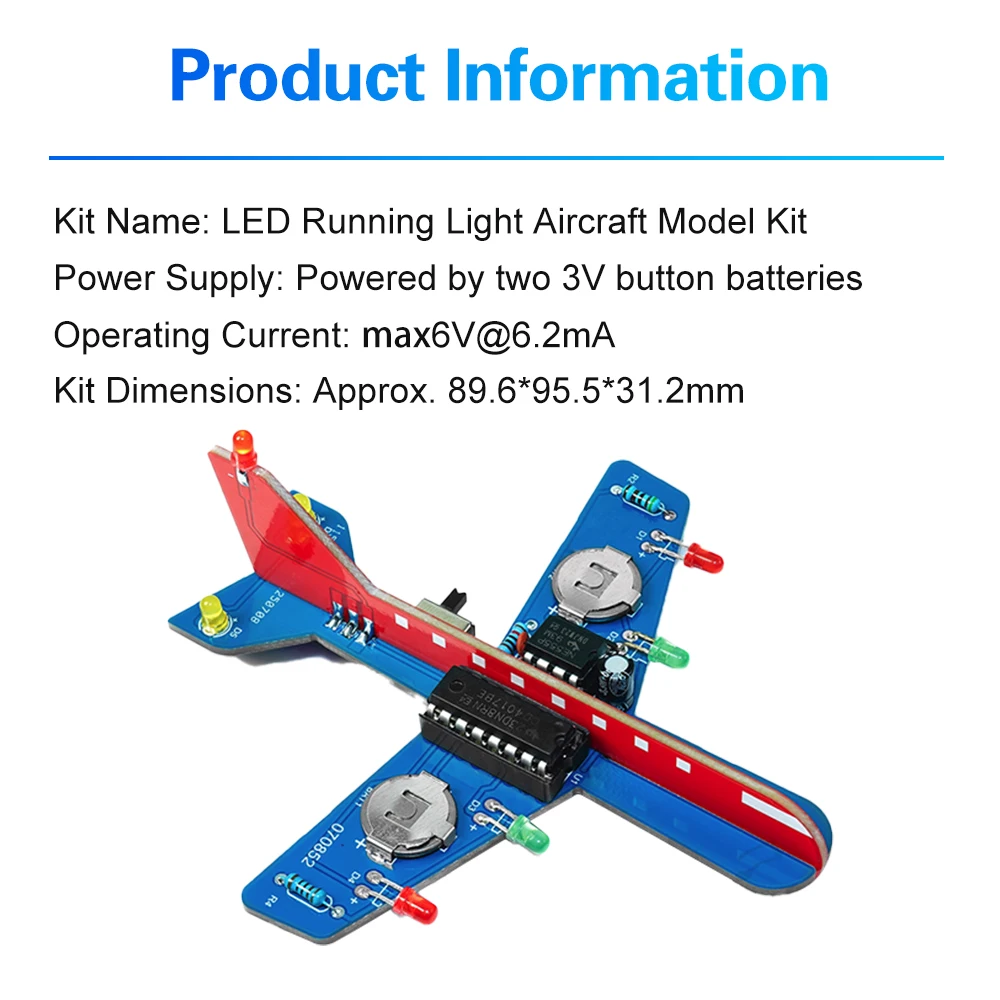Electronic Small Airplane Flash 7 LED Flow Light Circuit Making Kit NE555+CD4017 DIY Welding Practice Parts Red/Green/Yellow