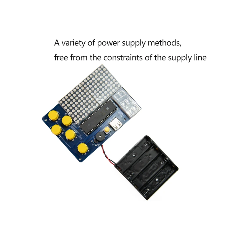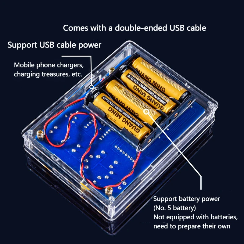 Operating voltage: 5V cell phone charger, rechargeable battery, four 5 dry battery power supply (kit does not provide